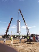 圖為吊裝現場。         11月2日,中國化學工程第六建設有限公司承建的海南華盛26萬噸/年非光氣法聚碳酸酯(PC)項目...