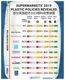 ????????在2019年減廢表現(xiàn)排行榜中,Waitrose和Morrisons在減少整體塑料足跡方面表現(xiàn)最佳,他們致力于推廣無(wú)包裝和可重復(fù)使用解決方。