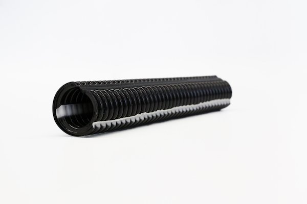 ????????柔性電纜管理系統(tǒng)的新型Polyflex波紋管,特別是用于車輛制造中,標(biāo)志著Schlemmer Group對(duì)TPE組件的要求已經(jīng)提高。為了避免產(chǎn)生尖銳的邊緣,并使狹縫波紋管安裝速度加快,產(chǎn)品開發(fā)人員的設(shè)計(jì)旨在通過共擠出將PA和TPE結(jié)合在一起。