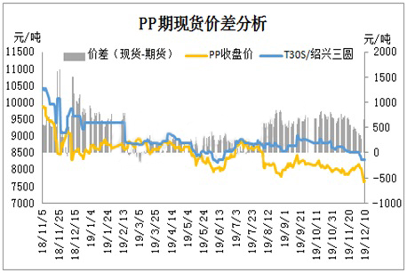 ????????由2019年PP內外盤價差對比發現,12月份市場內外盤價格開始逐步扭轉局勢,主因目前國際聚丙烯裝置多套開車并不順利,如馬來西亞石油公司裂解裝置問題及俄羅斯西布爾裝置前期開車均出現短期不順利現象,同時西方國家面臨新年節日,多數生產企業開工負荷下降,導致國內到港資源偏緊。而國內市場因產能急劇上升及終端訂單跟進乏力制約,國內市場低價不斷頻現,從而內外盤價差逐步逆轉。