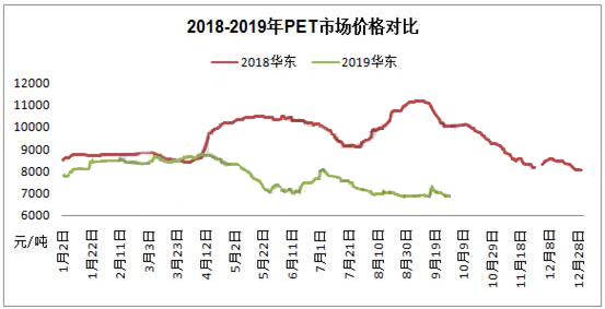 ????????PET: 本月,國內瓶級PET市場整體呈先揚后抑走勢。上半月,瓶級PET市場持續處于低位震蕩格局,華東市場價格圍繞在6700-6950元/噸的區間徘徊。原料PTA市場窄幅波動,成本支撐穩固,瓶片廠家多維持前期訂單發貨,現貨資源有限,廠家挺價出貨為主。下游前期備貨充足,需求持續較淡,買盤謹慎觀望為主,市場成交量有限。16-17日,國際原油高漲刺激下,聚酯原料PTA和乙二醇市場沖高,成本面利好推動,瓶片廠家報盤紛紛積極跟漲,華東市場價格漲至7150-7400元/噸。18日開始,隨著國際原油價格回落,原料PTA和乙二醇市場開始走低,成本面利空打壓下,瓶片廠家報盤紛紛下調,中間經銷商積極降價促銷,市場價格加速回落。至月底,華東市場重心跌至6750-6900元/噸。因對后市信心不足,下游買盤積極性較低,僅維持剛需備貨為主,疲弱需求持續拖累市場。截止29日,9月華東地區瓶級PET市場均價在6911元/噸,環比漲0.01%,同比跌34.89%,最高價出現在9月17日的7400元/噸,最低價出現在4日的6700元/噸。