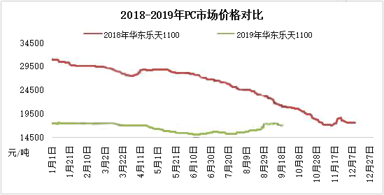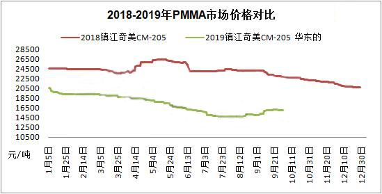 ????????月初,原料MMA走高及國內部分生產企業報盤走高,貿易商后市成本面走高,利潤空間壓縮,加之市場內工程塑料整體呈現一片看漲趨勢,貿易商報盤多有調漲意向。但下游需求仍舊疲弱,市場整體走貨顯緩慢,貿易商操盤謹慎,實盤多有商談空間。中旬,伴隨中秋小長假來臨,下游多剛需接盤為主。后期受沙特原油遭襲事件影響,原油價格暴漲,帶動大宗化工品齊漲,場內看漲情緒濃厚,商家操盤多有謹慎。下旬,原料MMA成本面支撐影響猶在,PMMA生產企業后市報盤多存上調預期。臨近國慶長假,下游終端工廠多無備貨意向,市場交投面疲弱,貿易商走貨遲緩,報盤多有謹慎,實盤或有小幅讓利促成交。