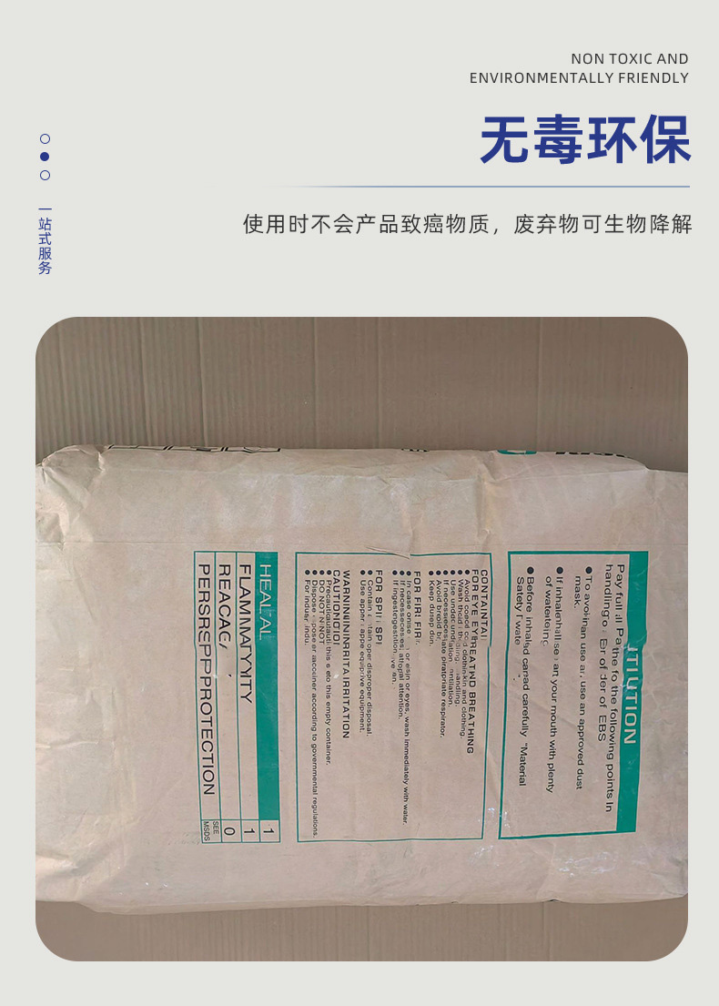 馬來西亞EBS 205F為白色粉末,手感滑膩。相對密度0.98(25℃),熔點141.5℃—146.5℃,閃點285℃。不溶于水,常溫下不溶于乙醇、丙酮等大多數溶劑,可溶于熱的氯化烴和芳香烴溶劑,但冷卻后又會呈沉淀析出,對酸、堿和水介質穩定。可用于食品包裝材料。